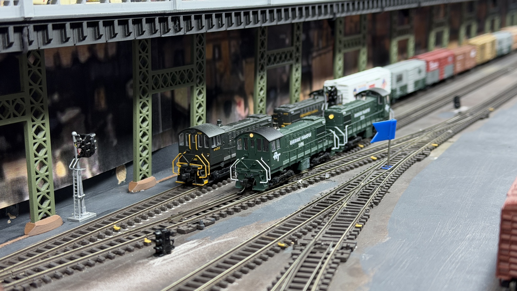 The Riverside Transfer Short Line Railroad (RTSL) is a freelanced N-scale model railroad designed to offer a fun and engaging operating experience. While the layout draws inspiration from real-world railroading practices, it prioritizes creative problem-solving, teamwork, and a sense of accomplishment over strict adherence to prototypical rules. Whether you’re a seasoned operator or new to the hobby, the RTSL provides a welcoming and enjoyable environment for all.